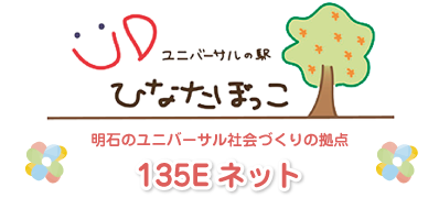 特定非営利活動法人 明石障がい者地域生活ケアネットワーク (通称:135Eネット)では、ユニバーサルの駅「ひなたぼっこ」を、ユニバーサル社会を実感できるとともに、ユニバーサル社会づくりをわかりやすく伝える場所として2011年 明石駅前にオープンしました。